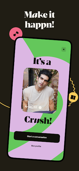 - If both users like each other, it becomes a “Crush”, allowing direct conversation.