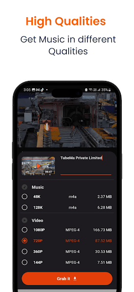 Download unlimited videos in different formats (MP4, 3GP, AVI) and resolutions (from 144p to 4K).